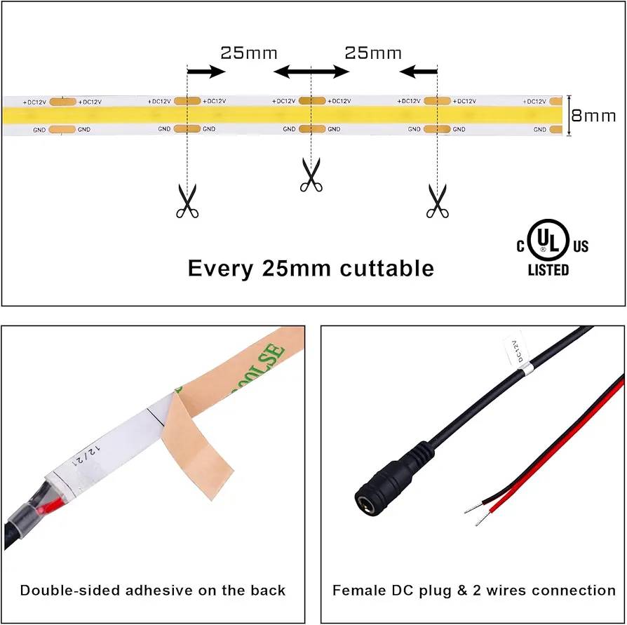 این ریسه مناسب استفاده در دکوراسیون داخلی، زیر کابینت، پشت تلویزیون، لبه سقف کاذب و هر جاییه که بخوای با نور ملایم و یکنواخت زیباترش کنی. به خاطر تکنولوژی COB، هیچ نقطه نوری مشخصی دیده نمیشه، و کل طول ریسه یکدست میدرخشه.